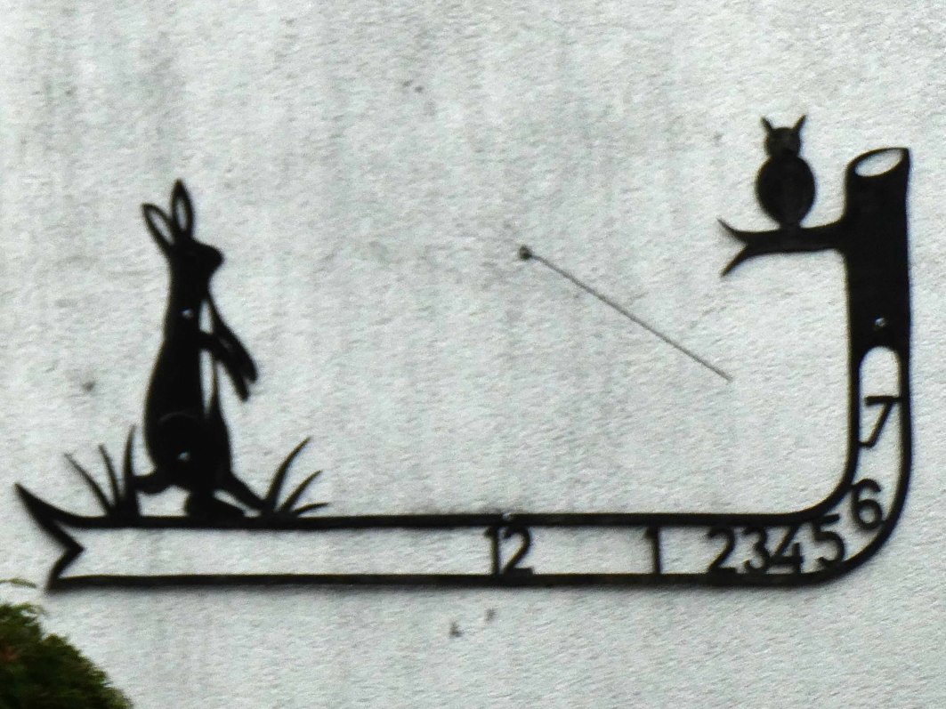 18: westexponierte Uhr mit Hase am Tag & Eule am Abend